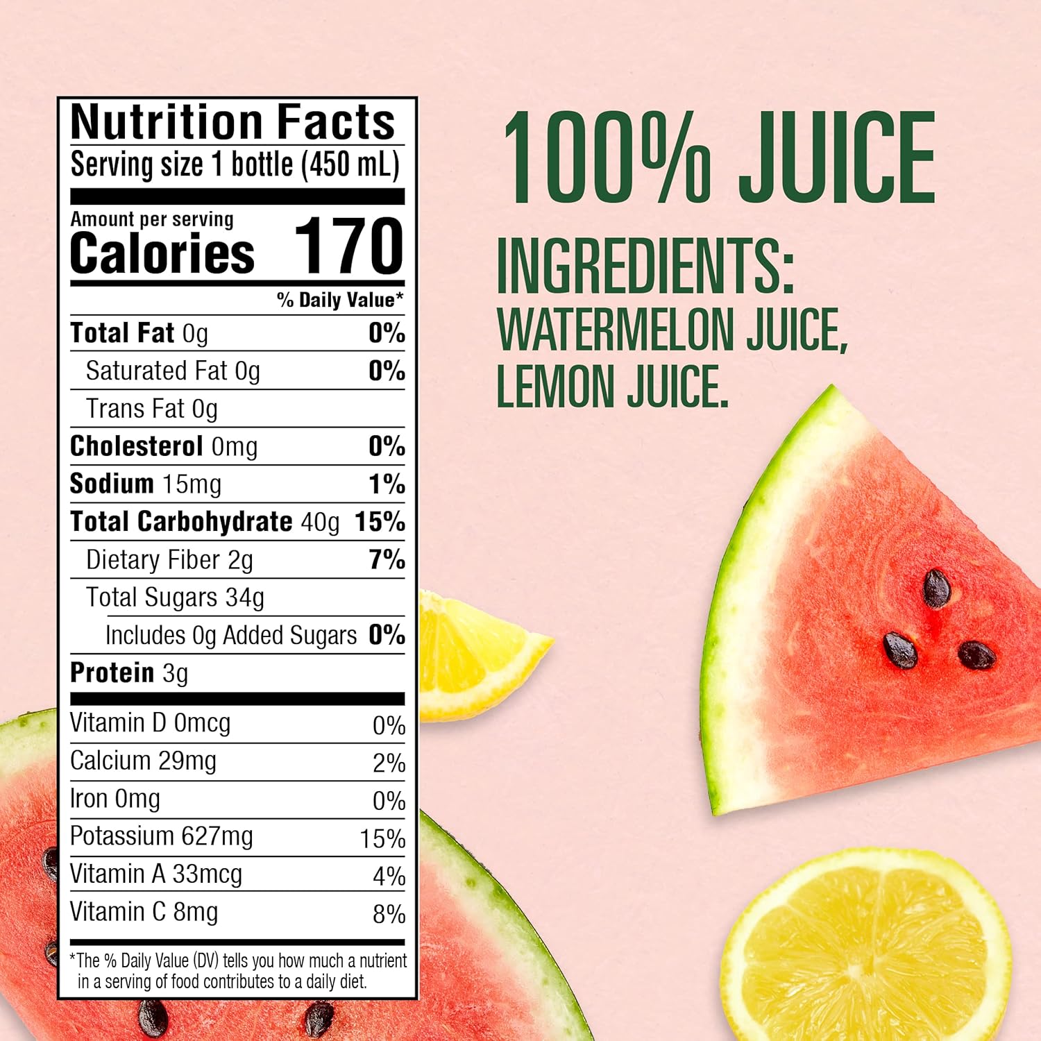 Evolution Fresh Mighty Watermelon, 100% Cold-Pressed Watermelon & Lemon Juice Blend, Natural Source of Hydration,15.2 Fl Oz